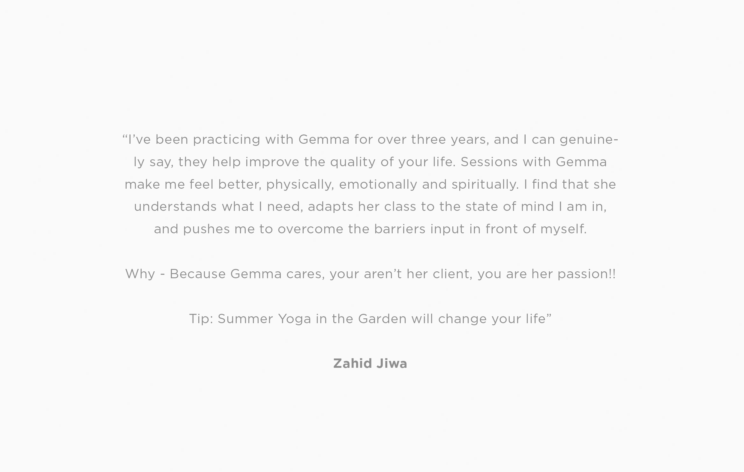 "Take it to the mat and open up every cell in your body to the good vibrations of the universe” – Gemma Cousins